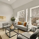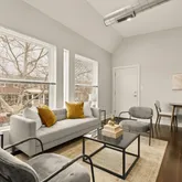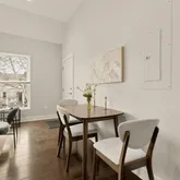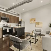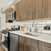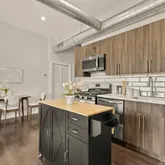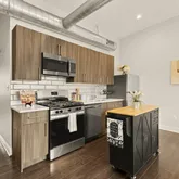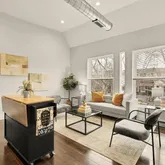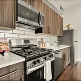 The open kitchen offers a flexible center island, tile backsplash, and brand-new stainless-steel stove and refrigerator, ideal for both everyday living and entertaining. Rich walnut-hued engineered hardwood floors run throughout, adding warmth and continuity...Flooded with sunlight, a modern two-bedroom, second-floor condo in vibrant Kingman Park.
