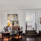Inside, the home is adorned with luxurious designer details throughout, featuring four spacious bedrooms, four full bathrooms, a powder room, walk-in closets, and sunlit living areas. The newly renovated, oversized kitchen and spacious public rooms are perfect for entertaining, while an entire floor of flex space—currently an interior design firm’s office—can easily be converted into additional living quarters or a separate apartment.