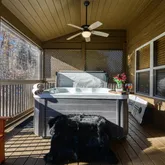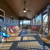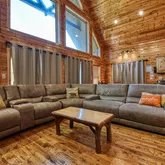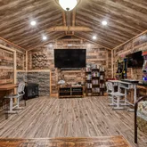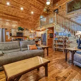 - Spacious Luxury: With nearly 3,000 square feet of exquisitely crafted living space, the cabin boasts an expansive layout that seamlessly combines comfort and elegance. Also enjoy 1,400 square feet of outdoor porches, deck, and patio that invite relaxation and entertainment under the open sky. Also enjoy 1,400 square feet of outdoor porches, deck, and patio that invite relaxation and entertainment under the open sky - Stylish Interiors: Step inside the cabin to find hand-scraped hardwood floors and tongue-and-groove ceilings that exude warmth and sophistication. The fully equipped kitchen, complete with modern and newer stainless steel appliances (2023-2025), is a culinary enthusiast's dream, ensuring that every meal is a delightful experience. The fully equipped kitchen, complete with modern and newer stainless steel appliances (2023-2025), is a culinary enthusiast's dream, ensuring that every meal is a delightful experience - Breathtaking Views: Revel in stunning mountain views that create a picturesque backdrop. Whether you're sipping coffee on the porch or enjoying a cozy evening by the one of the two indoor fireplaces, the scenery promises to enhance every moment. Whether you're sipping coffee on the porch or enjoying a cozy evening by the one of the two indoor fireplaces, the scenery promises to enhance every moment - Outdoor Entertaining: The rear, screen-enclosed porch features a hot tub (2025), dining table and chairs and additional seating. There is also a Weber gas grill and a park-style charcoal grill for fabulous outdoor cookouts. Gather around the fire pit, complete with 8 Adirondack chairs, and share stories under the stars. Gather around the fire pit, complete with 8 Adirondack chairs, and share stories under the stars - Relaxation Awaits: Two indoor, direct-vent gas fireplaces offer warmth and ambiance, creating a cozy haven during cooler evenings. - Relaxation Awaits: Two indoor, direct-vent gas fireplaces offer warmth and ambiance, creating a cozy haven during cooler evenings - Accessibility and Comfort: This property is designed with everyone in mind, featuring wheelchair-friendly access with convenient ramps, sound-insulated interior walls for added privacy, and memory foam mattresses for a restful night's sleep. - Accessibility and Comfort: This property is designed with everyone in mind, featuring wheelchair-friendly access with convenient ramps, sound-insulated interior walls for added privacy, and memory foam mattresses for a restful night's sleep - Family-Friendly Features: Families will appreciate the thoughtful inclusions such as retractable baby gates, a padded baby changing pad, high chair, pack 'n play, a toddler toilet seat, and other toddler and baby items. - Family-Friendly Features: Families will appreciate the thoughtful inclusions such as retractable baby gates, a padded baby changing pad, high chair, pack 'n play, a toddler toilet seat, and other toddler and baby items - Game Room & Recreation: The spacious rec room is perfect for fun-filled evenings with a pool table, shuffle board table and a collection of indoor games, ensuring that everyone can join in on the fun. - Game Room & Recreation: The spacious rec room is perfect for fun-filled evenings with a pool table, shuffle board table and a collection of indoor games, ensuring that everyone can join in on the fun - Efficient and Eco-Friendly: Equipped with modern amenities, this cabin features a Generac whole-house backup generator, an EV charger, and advanced water filtration and water softening system, three 250-gallon water storage tanks and an air sanitizing systems, ensuring comfort and peace of mind. - Efficient and Eco-Friendly: Equipped with modern amenities, this cabin features a Generac whole-house backup generator, an EV charger, and advanced water filtration and water softening system, three 250-gallon water storage tanks and an air sanitizing systems, ensuring comfort and peace of mind - Peaceful Atmosphere: With 2x6 wood-framed exterior walls with foam insulation, foam insulated ceilings and thermostats on each level, comfort is guaranteed in every season. - Peaceful Atmosphere: With 2x6 wood-framed exterior walls with foam insulation, foam insulated ceilings and thermostats on each level, comfort is guaranteed in every season - Ample Parking: With parking available for up to 6 vehicles, welcoming friends and family is a breeze. Whether you're looking for a tranquil escape, an adventure-filled getaway, or a place to create lasting memories with loved ones, this cabin is the ultimate destination. Don't miss your chance to tour this wonderful property that perfectly blends nature, comfort, and convenience.