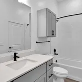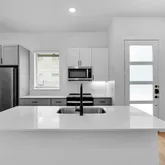 - Interior Features: Breakfast Bar, Double Vanity, Kitchen Island, Kitchen Family Room Combo, Pantry, Quartz Counters, Tub Shower, Window Treatments, Ceiling Fans, Kitchen/Dining Combo, Living/Dining Combo, Programmable Thermostat