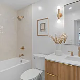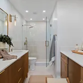 - Room Bathroom Features: Double Sinks in Primary Bath, Exhaust fan(s), Quartz Counters, Remodeled, Upgraded, Shower, Bathtub