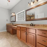 - Interior Features: Crown Molding, Double Vanity, Granite Counters, Hollywood Bath, High Ceilings, Kitchen Island, Kitchen Family Room Combo, Pantry, Separate Shower, Vanity, Window Treatments, Ceiling Fans, Programmable Thermostat