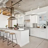 - Room Description: Stainless steel appliances, gas range, plentiful cabinets, flooded with light.