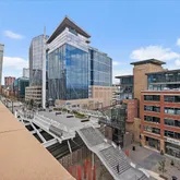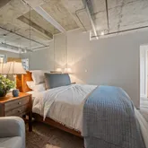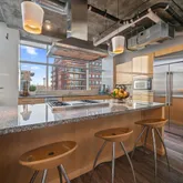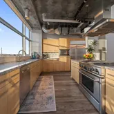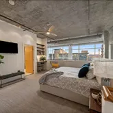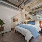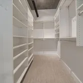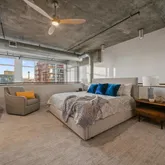 - Room Description: Expansive private loft-style Primary suite overlooking the main living area with sweeping views. Bring down the Hunter Douglas blinds to dim the lights and ambiance. Bedroom features built-in shelving, a dedicated desk area, custom oversized walk-in closet. Brand new carpet and plenty of lighting. The space captures the essence of modern urban luxury and tranquility.