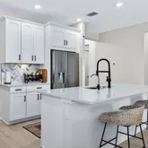 The gourmet kitchen is both beautiful and functional, featuring a gas cooktop, oversized center island, butlerās pantry, and a dedicated drinking water filtration systemāperfectly suited for entertaining or everyday luxury. Seamless flow into the living and dining areas makes hosting effortless and inviting.