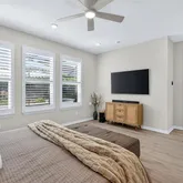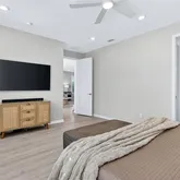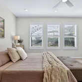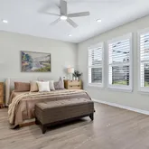 From the moment you arrive, the extended paver driveway, upgraded front entry, and enhanced landscaping with mature trees make a striking first impression. Inside, the home unfolds into a bright, open-concept layout where natural light pours through expansive south-facing sliders, framing the spectacular outdoor living space beyond. Plantation shutters throughout add timeless elegance and privacy, while high-end finishes elevate every room.