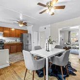 Upstairs, there are three generously sized bedrooms, along with a full bath showcasing stylish retro black-and-white tiling. The recently remodeled, fully finished basement offers added versatility with tall ceilings, a spacious entertaining area, brand-new full bathroom, and a kitchenette, and could be an ideal space for a fourth bedroom, home office, or gym. The large, fully fenced rear yard, is perfect for summer cookouts, gardening, or pets while additional space for private parking ensures convenience and peace of mind when returning home.