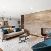 - Interior Features: Double Vanity, Entrance Foyer, Kitchen Island, Multiple Living Areas, Main Level Master, No Interior Steps, Open Floorplan, Pantry, Quartz Counters, Soaking Tub, Natural Woodwork, Walk In Closets