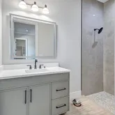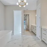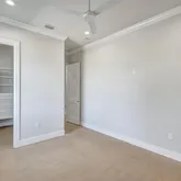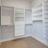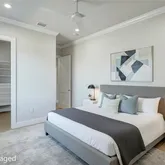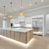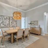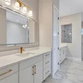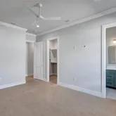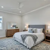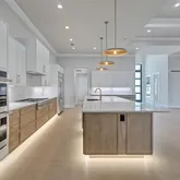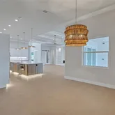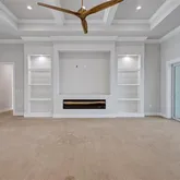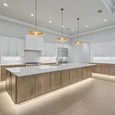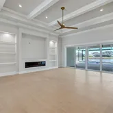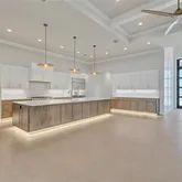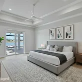 4 Bedrooms • 4.5 Baths All bedrooms are ensuite • Office/Den • Bonus Room • Panoramic Lakefront • Cul-de-Sac Lot Luxury Interior Features 14-foot quartz waterfall island with cabinetry on both sides. GE Monogram appliance package with 48” gas range top. Dual dishwashers & under-cabinet LED lighting. Wood-plank tile flooring laid in a staggered pattern 7” crown molding in main living areas 5” crown in primary & bonus room Great room TV wall with 70” electric fireplace & built-in lighted shelving Plantation shutters throughout Custom closets with built-in shelving Bonus room + dedicated office/den Spa-inspired primary bath with 65” resin soaking tub & oversized shower Outdoor Living & Panoramic Views