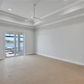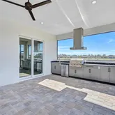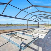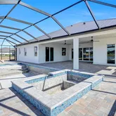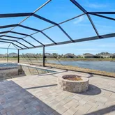 Panoramic screen enclosure for unobstructed lake views Saltwater pool & spa, Sun shelf with PebbleTec finish Outdoor kitchen with stainless grill, sink, and bar refrigerator Paver lanai, driveway, pool deck & front entry Upgraded landscaping & full irrigation system on reclaimed waterStructural & Energy-Efficient Construction Impact-rated windows & PGT impact sliding glass doors PEX hot water lines insulated with Armor-Flex R-19 spray foam insulation over all living areas R-19 batt insulation in frame wall to garage R-8 exterior foam sheathing on living area exterior walls Batt insulation on all interior walls for sound control 26-gauge Galvalume metal 5V crimp roof installed over peel-and-stick underlayment (10-year workmanship warranty) Concrete block exterior walls with steel uprights + hurricane strapping 150 mph engineered roof truss package 4” concrete slab with fiber mesh poured over vapor barrier Termite treatment under slab