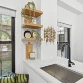Completely reimagined in 2020, the kitchen and bath were gutted and rebuilt with exceptional attention to detail. The kitchen features quartz countertops, frameless Elmwood cabinetry, and a full suite of Bosch appliances—including a washer and dryer discreetly housed in a dedicated laundry walk-in. Every fixture and finish was selected for harmony and refinement: Buster & Punch switches and matching cabinet hardware, Niveous pendant lighting, and a Ball ceiling fan by Modern Fan Company all contribute to the home’s polished, contemporary character.