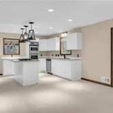- Kitchen Features: Cabinets White, Eat-in Kitchen, Kitchen Island, Pantry, Solid Surface Counters, Stone Counters