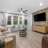 - Interior Features: Ceiling Fan(s), Eating Space In Kitchen, Kitchen/Family Room Combo, Primary Bedroom Main Floor, Solid Surface Counters, Solid Wood Cabinets, Stone Counters, Thermostat, Walk-In Closet(s), Window Treatments