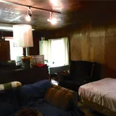 - Room Description: 8 x14 of the room is a bed area; main area has fireplace and fold out couch, TV space and another area for a double bed