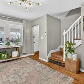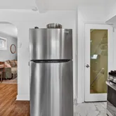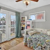 Upstairs you’ll enjoy two comfortably sized bedrooms. The primary bedroom is large enough for a king bed and has dual closets. The secondary bedroom is spacious enough for a queen bed and has wonderful light flowing from the french doors and juliette balcony. The upstairs hall bathroom was newly renovated in 2025.