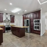 At the heart of the home is a spacious chef’s kitchen designed to inspire. Rich wood cabinetry, stainless steel appliances, a striking stainless steel vent hood, and a large prep island create both beauty and function—an ideal space for cooking, entertaining, and bringing people together.