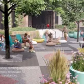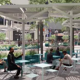 - Room Description: spacious dining area near floor to ceiling windows with view of D&F Towers