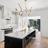 The...Discover perfection in this spectacular, fully renovated Victorian townhome designed by Nestor Santa-Cruz and constructed by Fajen & Brown, located just blocks from Dupont Circle. With over 3,500 square feet of pristine living space, this wide townhome blends classic elegance with modern luxury, featuring white oak hardwood floors, custom millwork, and meticulously crafted details throughout. A grand staircase with dark iron balusters leads to every level, setting the tone for the entire home.