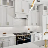 The main level is an entertainer’s dream, with a spacious open floor plan that includes a welcoming living room framed by built-in bookshelves with rolling ladder and a stunning marble gas fireplace. The chef-inspired kitchen is a showstopper, boasting a La Cornue range, expansive quartz countertops and backsplash, a sprawling island, and a built-in coffee bar. A formal dining room with additional built-in shelves flows seamlessly to French doors that open onto the rear deck. The rear of the home offers a beautifully crafted IPE deck that leads to a generous patio area, which conveniently accommodates two secure parking spots with an EV charger. The main level also features a functional mudroom with hanging space as you enter from the garage and a beautifully appointed powder room, perfect for modern living.