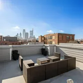 Outdoor living is a true standout. Step onto the second-floor deck, ideal for grilling, lounging, or storage, then continue up to the private rooftop retreat. Unlike neighboring homes, this expansive roof deck spans the full length of the property and offers breathtaking skyline views and sweeping 360-degree vistas of the city, creating an exceptional setting for entertaining, relaxing, or enjoying sunsets. The fiberglass roof was replaced in 2017 for added peace of mind.