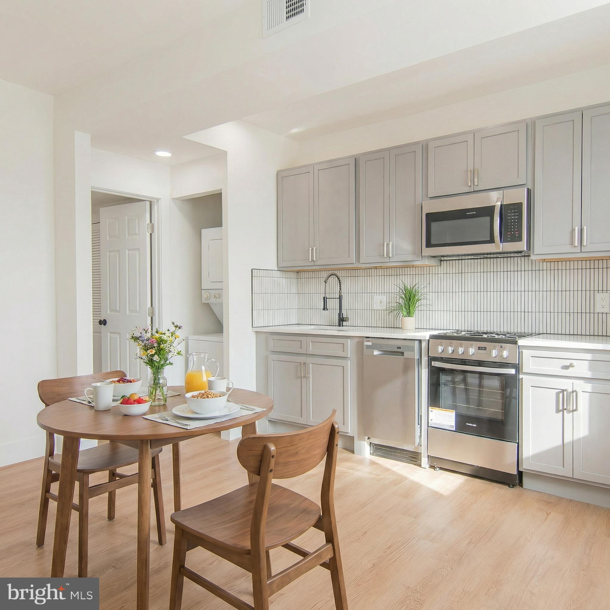 - Appliances: Built-In Microwave, Oven/Range - Electric, Refrigerator, Washer/Dryer Stacked