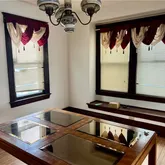 - Window Features: Drapes, Leaded Glass