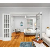 - Living Room Features: Builtin Features, Fireplace, French Doors, Hardwood Floors