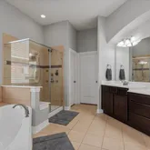 - Interior Features: Breakfast Bar, Crown Molding, Double Vanity, Entrance Foyer, Granite Counters, High Ceilings, Kitchen Family Room Combo, Bath In Primary Bedroom, Pantry, Soaking Tub, Separate Shower, Tub Shower, Window Treatments, Ceiling Fans, Programmable Thermostat