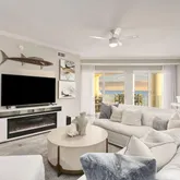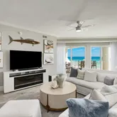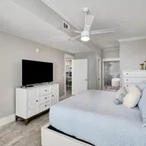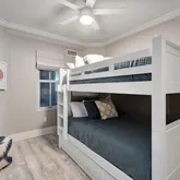 The primary suite is a true sanctuary with two closets an a spa-inspired ensuite bath boasting dual sinks, a freestanding soaking tub with gulf views, and an oversized rain shower - no detail left untouched. One of the guest suites features its own ensuite bath, while the other is being utilized as a bunk room with an additional full bathroom for everyone just outside its door.