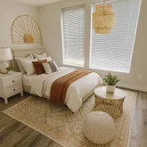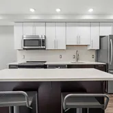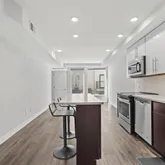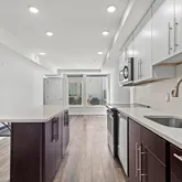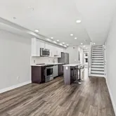 The kitchen is a chef’s delight, featuring impressive 42" cabinets, sleek stainless steel appliances, and stunning quartz countertops. An inviting island not only expands your workspace but also offers extra seating, making it a hub for gatherings. Natural light pours in through large windows, enhancing the open, welcoming feel of the space.