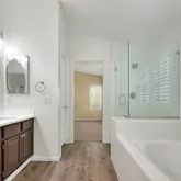 - Room Bathroom Features: Bathtub, Shower, Shower in Tub, Closet in bathroom, Double sinks in bath(s), Double Sinks in Primary Bath, Exhaust fan(s), Privacy toilet door, Remodeled, Separate tub and shower, Soaking Tub, Walk-in shower