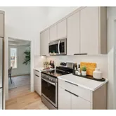 - Kitchen Appliances: Free Standing Range, Free Standing Refrigerator, Microwave, Pantry, Quartz, Stainless Steel Appliance, Tile