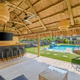 - Exterior Features: Auto Sprinkler, Built-in Grill, Cabana, Custom Lighting, Deck, Fence, Open Patio, Outdoor Shower, Shed, Summer Kitchen