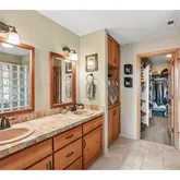 - Primary Bedroom Additional Features: Double Sinks, Ensuite, Tile Floor, Vaulted Ceiling, Walkin Closet, Walkin Shower, Wallto Wall Carpet