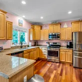 - Kitchen: Floor - Wood, Dec Molding, Granite/Stone Counter, Sliding Door, Pantry, Eat-In, Bnook/Dining Area