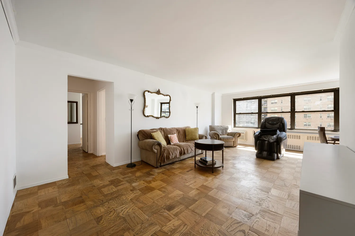 Residents enjoy 24-hour doorman service, a live-in super, concierge, a fully equipped gym, bike storage, private package and storage rooms, laundry facilities, and access to indoor parking garages. The building offers five acres of beautifully landscaped private park, exclusively for shareholders, featuring pickleball courts, ping pong, and basketball.
