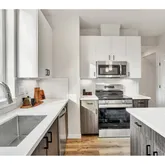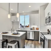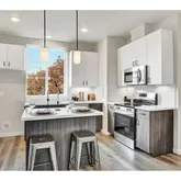 - Kitchen Room Additional Features: Free Standing Range, High Ceilings, Laminate Flooring, Quartz