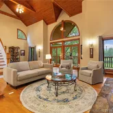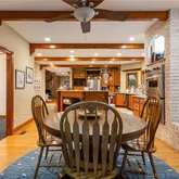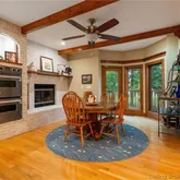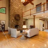 cooktop and opens to a cozy dining area with a fireplace, in addition to a formal dining room for more elegant gatherings. Inside, you'll find a captivating stone fireplace as the centerpiece of the main living area, plus two additional fireplaces—