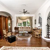 - Interior Features: Built-In Cabinets, Coffered Ceiling, Exclusions, Foyer, French Doors, Laundry Tub, Smoke Detectors, Surround Sound Wired, Tray Ceiling, Volume Ceiling, Walk-In Closet, Wet Bar, Window Coverings, Cable Prewire