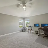 - Interior Features: Ceiling Fan(s), High Ceilings, Living Room/Dining Room Combo, Open Floorplan, Primary Bedroom Main Floor, Split Bedroom, Walk-In Closet(s)