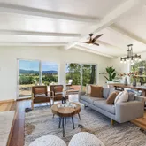 - Living Room Features: Cathedral/Vaulted, Deck Attached, Great Room, Open Beam Ceiling, View