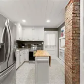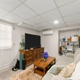 A garden-level 1-bedroom, 1-bath apartment with a full kitchen