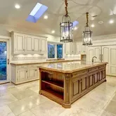 - Kitchen Features: Gourmet Kitchen, Open to Family Room, Stone Counters, Remodeled, Skylight(s), Island