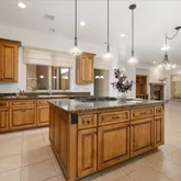 - Interior Features: Beamed Ceilings, Ceiling Fan(s), Granite Counters, Kit/Din Combo, Kitchen Island, Live on One Level, High Ceilings, Walk-In Closet(s), Wash/Dry Connection