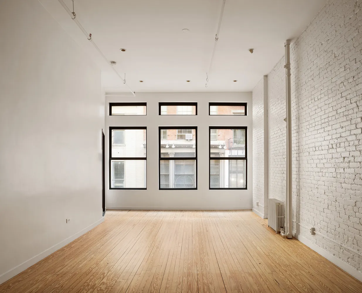 Exit the elevator directly into your great room, a massive expanse with endless combinations for living, dining, entertaining, and relaxing. East-facing windows over Mercer Street illuminate this vast space. The quality of the renovation is immediately evident: there are new oak floors throughout, a three-zone split system air conditioning system, and Lutron switches with dimmers. Others, like the wiring for sound and wireless climate controls, are less obvious but equally customized.