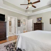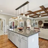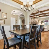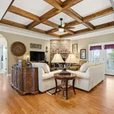 • True open split floor plan with custom paint, curved edges, 5 arched openings, and 10-ft coffered and tray ceilings