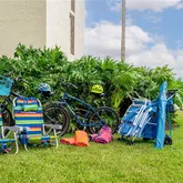 • Beach chairs, umbrellas, towels, and beach cart provided