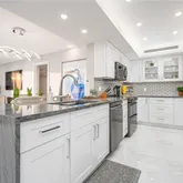 • Waterfall granite countertops and full-size appliances