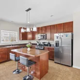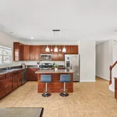 - Kitchen: Center Island, Ceramic Tile, Sliding Door, Pantry, Eat-In