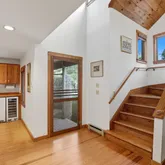 - Interior Features: A,Disp,Ins,Irr,OSh,WdStove, Floor 1: The first floor features a sunlit living room with terracotta tile floors and sliding doors to the deck, a wet bar with wine cooler, and a full laundry room with ample storage. A double vanity bath serves two bedrooms. An outdoor shower at the front of the home completes the layout, perfect after a day at the beach. The garage is connected to the home, entrance if off the first floor living area., Floor 2: The second floor offers an open living with a central brick chimney, vaulted wood-beamed ceilings and abundant natural light. Access to a large upper deck—perfect for entertaining, with stairs leading down to the lower deck. A granite kitchen with center island is located next to the vaulted ceiling dining room. The spacious, private primary suite includes an ensuite bath and offers vaulted ceilings and built in desk. The powder room completes the layout of the second floor., Floor 3: The third floor features a cozy loft with wood paneled ceilings and exposed beams, offering additional sleeping space and tree-top views.